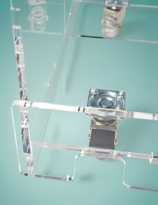 • Struttura in plexiglass trasparente.