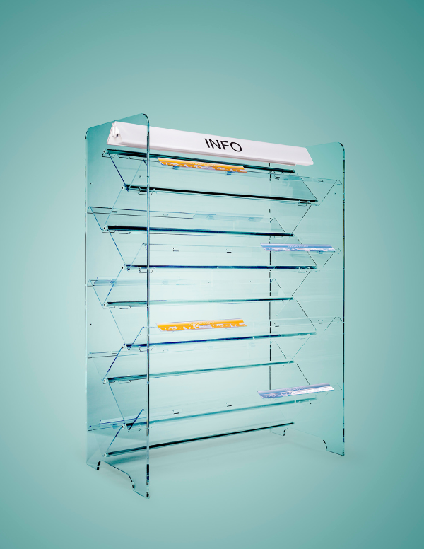 GO-PLEXI 4+4 piani inclinati con 2 vetrof. e portaprezzi