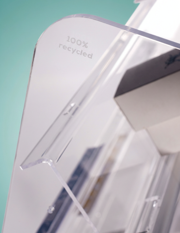 • Materiale: plexiglass trasparente riciclato 100% spessore 10 mm.